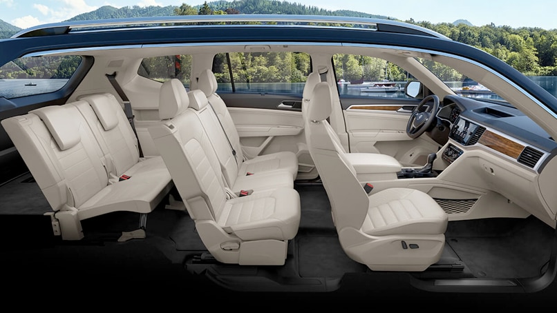 Atlas accommodates three rows of seats with ease. Each row is large enough for kids, adults, or a combination of both to sit comfortably.
