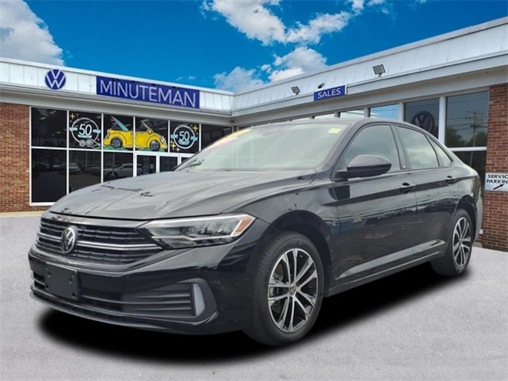 Minuteman Volkswagen is proud to present you with another True Market Priced Pre-Owned Vehicle. This 2023 Volkswagen Jetta 1.5T Sport is loaded with the following Factory Options: Black Cloth Driver Assistance & Convenience Package (Adaptive Cruise Control, Auto-Dimming Interior Rear-View Mirror, Lane Assist (Lane Keeping System), Leather-Wrapped Steering Wheel & Shifter, Rain-Sensing Automatic Front Wipers, and Travel Assist (Semi-Automated Driving Assistance)), Black Cloth, 4 Speakers, 4-Wheel Disc Brakes, ABS brakes, Air Conditioning, Alloy wheels, AM/FM radio, Brake assist, Bumpers: body-color, Cloth Seat Trim, Credit - Rear Sensors Removed, Delay-off headlights, Driver door bin, Driver vanity mirror, Dual front impact airbags, Dual front side impact airbags, Electronic Stability Control, Emergency communication system: VW Car-Net Safe & Secure 5-year, Exterior Parking Camera Rear, First Aid Kit, Front anti-roll bar, Front Bucket Seats, Front Center Armrest, Front Comfort Sport Seats, Front wheel independent suspension, Fully automatic headlights, Heated door mirrors, Heavy Duty Trunk Liner w/VW CarGo Blocks, Illuminated entry, Low tire pressure warning, Occupant sensing airbag, Outside temperature display, Overhead airbag, Overhead console, Panic alarm, Passenger door bin, Passenger vanity mirror, Power door mirrors, Power steering, Power windows, Radio data system, Radio: MIB3 Composition Color w/6.5" Touchscreen, Rear anti-roll bar, Rear reading lights, Rear seat center armrest, Rear window defroster, Remote keyless entry, Roadside Assistance Kit, Rubber Monster Mats Kit (Set of 4), Speed control, Speed-sensing steering, Split folding rear seat, Steering wheel mounted audio controls, Tachometer, Telescoping steering wheel, Tilt steering wheel, Traction control, Trip computer, Variably intermittent wipers, and Wheels: 17" 2-Tone Machined Alloy!!
