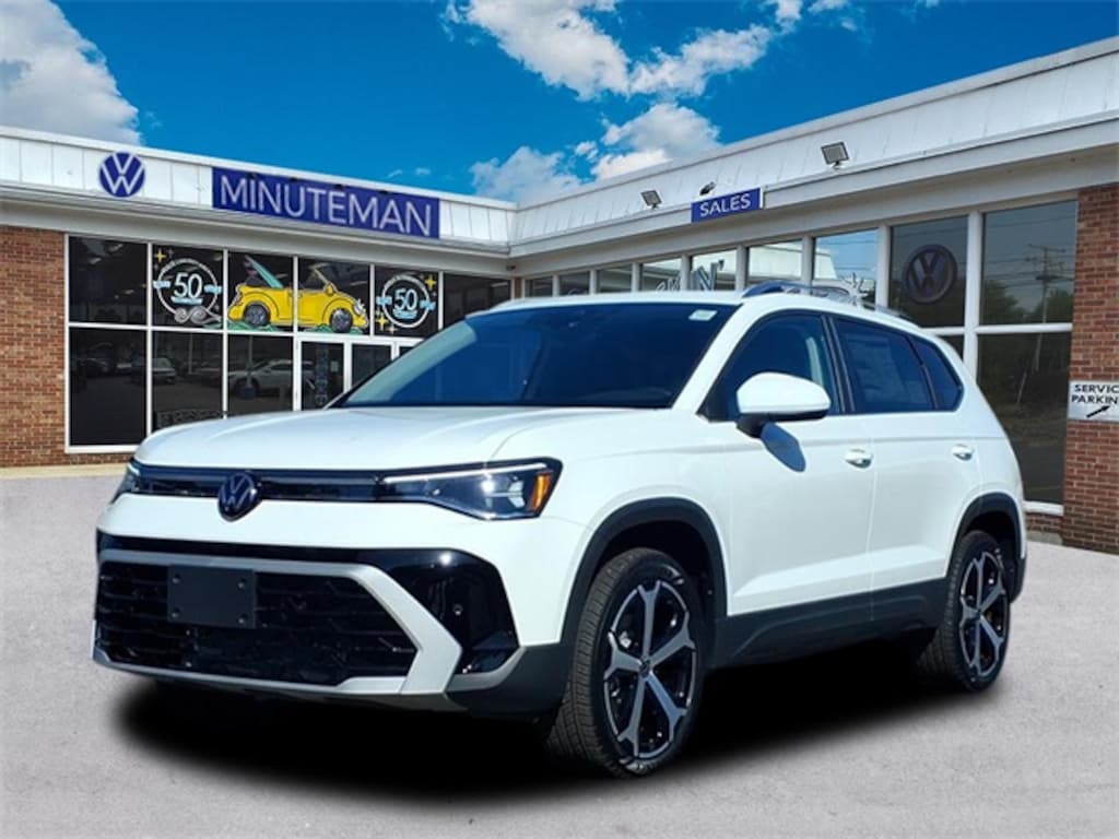 Minuteman Volkswagen is proud to present you with another True Market Priced Vehicle. This 2025 Volkswagen Taos 1.5T SEL is loaded with the following Factory Options: 4-Wheel Disc Brakes, 6 Speakers, ABS brakes, Active Blind Spot Monitor, Air Conditioning, Alloy wheels, AM/FM radio: SiriusXM with 360L, Auto High-beam Headlights, Auto-dimming Rear-View mirror, Auto-Dimming Rearview Mirror w/HomeLink Connect, Automatic temperature control, Brake assist, Bumpers: body-color, Chrome Bumperdillo Protection Plate for Rear Bumper, Compass, Delay-off headlights, Driver door bin, Driver vanity mirror, Dual front impact airbags, Dual front side impact airbags, Electronic Stability Control, Emergency communication system: VW Car-Net Safe & Secure 5-year, Exterior Parking Camera Rear, Four wheel independent suspension, Front anti-roll bar, Front Bucket Seats, Front Center Armrest, Front dual zone A/C, Front reading lights, Front Strut Rear Multi-Link Suspension, Fully automatic headlights, Heated & Actively Ventilated Front Bucket Seats, Heated door mirrors, Heated front seats, Heated steering wheel, Illuminated entry, Leather Shift Knob, Low tire pressure warning, Navigation system: VW Car-Net Guide & Inform, Occupant sensing airbag, Outside temperature display, Overhead airbag, Overhead console, Panic alarm, Passenger door bin, Passenger vanity mirror, Perforated Vienna Leather Seating Surfaces, Power door mirrors, Power driver seat, Power moonroof, Power steering, Power windows, Radio data system, Radio: MIB3 Discover Media AM/FM/HD, Rain sensing wipers, Rear anti-roll bar, Rear seat center armrest, Rear window defroster, Rear window wiper, Remote keyless entry, Rubber Mats Kit, Security system, Speed control, Speed-sensing steering, Split folding rear seat, Spoiler, Steering wheel mounted audio controls, Tachometer, Telescoping steering wheel, Tilt steering wheel, Traction control, Trip computer, Variably intermittent wipers, Ventilated front seats, VW Care, and Wheels: 19" 2-Tone Machined Alloy!!