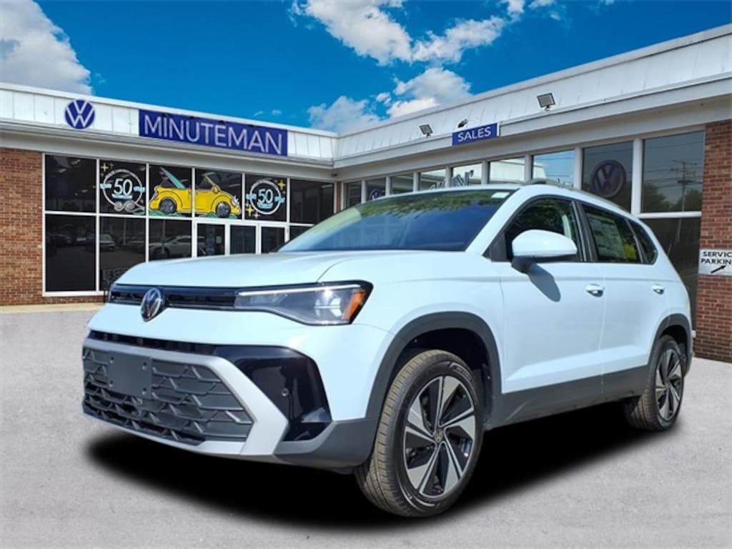 Minuteman Volkswagen is proud to present you with another True Market Priced Vehicle. This 2025 Volkswagen Taos 1.5T SE is loaded with the following Factory Options: Panoramic Sunroof Package, 4-Wheel Disc Brakes, 6 Speakers, ABS brakes, Active Blind Spot Monitor, Air Conditioning, Alloy wheels, AM/FM radio: SiriusXM with 360L, Auto High-beam Headlights, Auto-Dimming Rearview Mirror w/HomeLink Connect, Automatic temperature control, Brake assist, Bumpers: body-color, CloudTex & Cloth Seating Surfaces, Compass, Delay-off headlights, Driver door bin, Driver vanity mirror, Dual front impact airbags, Dual front side impact airbags, Electronic Stability Control, Emergency communication system: VW Car-Net Safe & Secure 5-year, Exterior Parking Camera Rear, First Aid Kit, Four wheel independent suspension, Front anti-roll bar, Front Bucket Seats, Front Center Armrest, Front dual zone A/C, Front reading lights, Front Strut Rear Multi-Link Suspension, Fully automatic headlights, Heated door mirrors, Heated Front Bucket Seats, Heated front seats, Heated steering wheel, Illuminated entry, Leather Shift Knob, Low tire pressure warning, Occupant sensing airbag, Outside temperature display, Overhead airbag, Overhead console, Panic alarm, Passenger door bin, Passenger vanity mirror, Power door mirrors, Power driver seat, Power steering, Power windows, Radio data system, Radio: MIB3 Composition Media AM/FM/HD, Rain sensing wipers, Rear anti-roll bar, Rear seat center armrest, Rear window defroster, Rear window wiper, Remote keyless entry, Roadside Assistance Kit, Rubber Mats Kit, Security system, Speed control, Speed-sensing steering, Split folding rear seat, Spoiler, Steering wheel mounted audio controls, Tachometer, Telescoping steering wheel, Tilt steering wheel, Traction control, Trip computer, Variably intermittent wipers, VW Care, and Wheels: 18" 2-Tone Machined Alloy!!