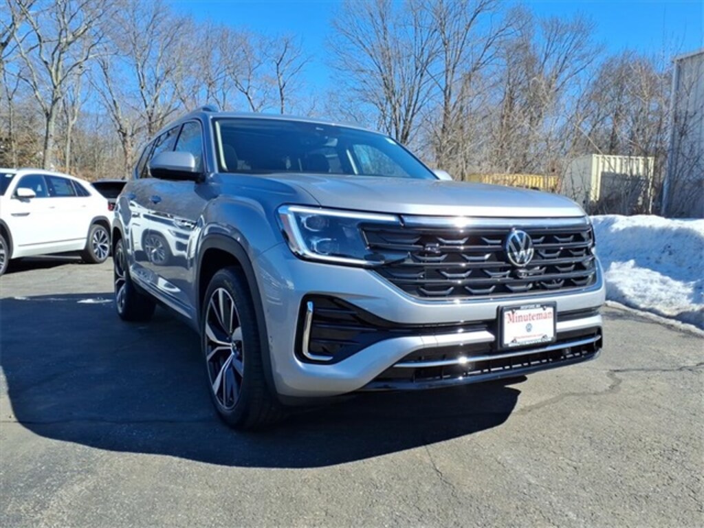 Minuteman Volkswagen is proud to present you with another True Market Priced Vehicle. This 2026 Volkswagen Atlas 2.0T SEL Premium R-Line is loaded with the following Factory Options: Trailer Hitch Extras, 10 Speakers, 2nd-Row Dual Captain's Chairs, 3rd row seats: split-bench, 4-Wheel Disc Brakes, 4-Wheel Independent Suspension, ABS brakes, Air Conditioning, Alloy wheels, AM/FM radio: SiriusXM with 360L, Auto High-beam Headlights, Auto-dimming Rear-View mirror, Automatic temperature control, Brake assist, Bumpers: body-color, Compass, Delay-off headlights, Driver door bin, Driver vanity mirror, Dual front impact airbags, Dual front side impact airbags, Electronic Stability Control, Emergency communication system: VW Car-Net Safe & Secure 5-year, Exterior Parking Camera Rear, First Aid Kit, Four wheel independent suspension, Front anti-roll bar, Front Bucket Seats, Front Center Armrest, Front dual zone A/C, Front fog lights, Front reading lights, Fully automatic headlights, Garage door transmitter: HomeLink, harman/kardon® Speakers, Heads-Up Display, Heated door mirrors, Heated front seats, Heated rear seats, Heated steering wheel, Illuminated entry, Leather steering wheel, Low tire pressure warning, Memory seat, Navigation System, Occupant sensing airbag, Outside temperature display, Overhead airbag, Overhead console, Panic alarm, Passenger door bin, Passenger vanity mirror, Perforated Vienna Leather Seating Surfaces, Power door mirrors, Power driver seat, Power Liftgate, Power moonroof: Panoramic, Power passenger seat, Power steering, Power windows, Radio data system, Rain sensing wipers, Rear air conditioning, Rear anti-roll bar, Rear audio controls, Rear reading lights, Rear seat center armrest, Rear window defroster, Rear window wiper, Remote keyless entry, Roadside Assistance Kit, Rubber Mats Kit (2-Row), Security system, Speed control, Speed-sensing steering, Split folding rear seat, Spoiler, Sport steering wheel, Steering wheel mounted audio controls, Tachometer, Telescoping steering wheel, Tilt steering wheel, Traction control, Trip computer, Turn signal indicator mirrors, Variably intermittent wipers, Ventilated front seats, Volkswagen Logo Puddle Lights, VW Care, and Wheels: 21" 2-Tone Machined Alloy!!