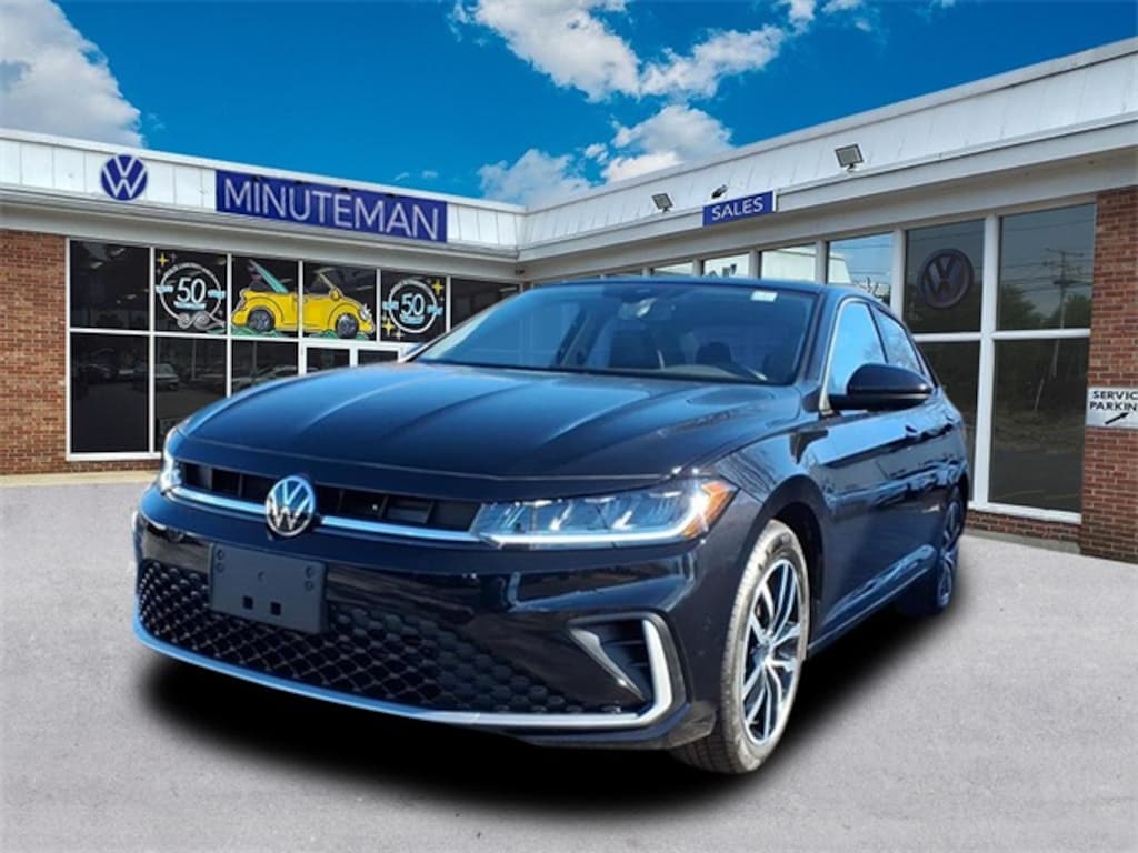 Minuteman Volkswagen is proud to present you with another True Market Priced Vehicle. This 2026 Volkswagen Jetta 1.5T SE is loaded with the following Factory Options: Grigio & Black Artificial Leather Grigio & Black Artificial Leather, 4-Wheel Disc Brakes, 6 Speakers, ABS brakes, Active Blind Spot Monitor, Air Conditioning, Alloy wheels, AM/FM radio: SiriusXM with 360L, Auto-dimming Rear-View mirror, Automatic temperature control, Brake assist, Bumpers: body-color, CloudTex and V-Tex Leatherette Seat Trim, Delay-off headlights, Driver door bin, Driver vanity mirror, Dual front impact airbags, Dual front side impact airbags, Electronic Stability Control, Emergency communication system: VW Car-Net Safe & Secure 5-year, Exterior Parking Camera Rear, Front anti-roll bar, Front Bucket Seats, Front Center Armrest, Front dual zone A/C, Front wheel independent suspension, Fully automatic headlights, Heated door mirrors, Heated Front Seats, Heated front seats, Illuminated entry, Leather Shift Knob, Leather steering wheel, Low tire pressure warning, Occupant sensing airbag, Outside temperature display, Overhead airbag, Overhead console, Panic alarm, Passenger door bin, Passenger vanity mirror, Power door mirrors, Power driver seat, Power moonroof: Panoramic, Power steering, Power windows, Radio data system, Radio: MIB3 Composition Media with 8" Touchscreen, Rain sensing wipers, Rear anti-roll bar, Rear reading lights, Rear seat center armrest, Rear window defroster, Remote keyless entry, Speed control, Speed-sensing steering, Split folding rear seat, Steering wheel mounted audio controls, Tachometer, Telescoping steering wheel, Tilt steering wheel, Traction control, Trip computer, Variably intermittent wipers, and Wheels: 17" Twin 5-Spoke 2-Tone Machined Alloy!!