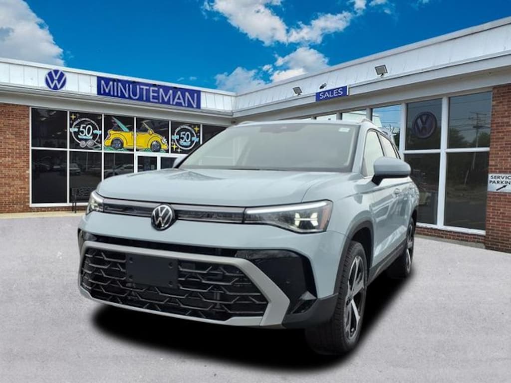 Minuteman Volkswagen is proud to present you with another True Market Priced Vehicle. This 2026 Volkswagen Taos 1.5T SEL is loaded with the following Factory Options: 4-Wheel Disc Brakes, 8 Speakers, ABS brakes, Active Blind Spot Monitor, Air Conditioning, Alloy wheels, AM/FM radio: SiriusXM with 360L, Auto High-beam Headlights, Auto-Dimming Rear-View Mirror, Auto-dimming Rear-View mirror, Automatic temperature control, Black Bumperdillo Protection Plate For Rear Bumper, Brake assist, Bumpers: body-color, Compass, Delay-off headlights, Driver door bin, Driver vanity mirror, Dual front impact airbags, Dual front side impact airbags, Electronic Stability Control, Emergency communication system: VW Car-Net Safe & Secure 5-year, Exterior Parking Camera Rear, First Aid Kit, Four wheel independent suspension, Front anti-roll bar, Front Bucket Seats, Front Center Armrest, Front dual zone A/C, Front reading lights, Front Strut Rear Multi-Link Suspension, Fully automatic headlights, Heated and Actively Ventilated Front Bucket Seats, Heated door mirrors, Heated front seats, Heated steering wheel, Illuminated entry, Leather Shift Knob, Low tire pressure warning, Navigation system: VW Car-Net Guide & Inform, Occupant sensing airbag, Outside temperature display, Overhead airbag, Overhead console, Panic alarm, Passenger door bin, Passenger vanity mirror, Perforated Vienna Leather Seating Surfaces, Power door mirrors, Power driver seat, Power moonroof, Power steering, Power windows, Radio data system, Radio: MIB3 Discover Media AM/FM/HD, Rain sensing wipers, Rear anti-roll bar, Rear seat center armrest, Rear window defroster, Rear window wiper, Remote keyless entry, Roadside Assistance Kit, Rubber Mats Kit, Security system, Speed control, Speed-sensing steering, Split folding rear seat, Spoiler, Steering wheel mounted audio controls, Tachometer, Telescoping steering wheel, Tilt steering wheel, Traction control, Trip computer, Variably intermittent wipers, Ventilated front seats, VW Care, and Wheels: 19" 2-Tone Machined Alloy!!