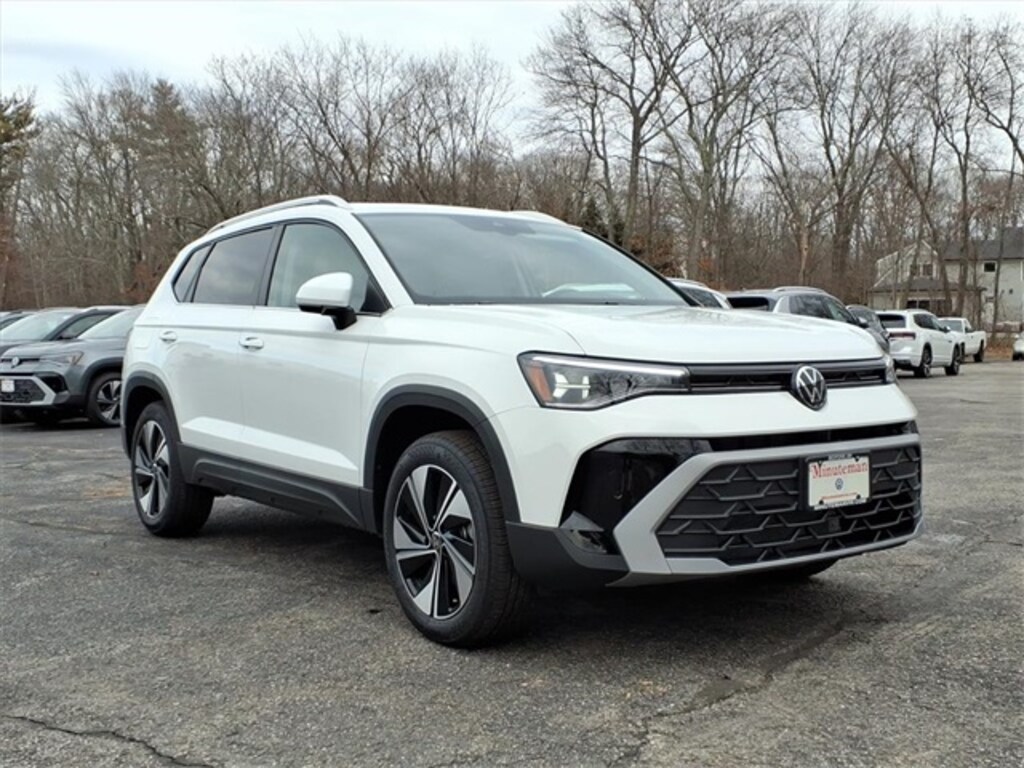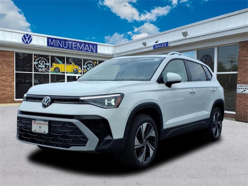 Minuteman Volkswagen is proud to present you with another True Market Priced Vehicle. This 2026 Volkswagen Taos 1.5T SE is loaded with the following Factory Options: Panoramic Sunroof Package, 4-Wheel Disc Brakes, 6 Speakers, ABS brakes, Active Blind Spot Monitor, Air Conditioning, Alloy wheels, AM/FM radio: SiriusXM with 360L, Auto High-beam Headlights, Auto-Dimming Rear-View Mirror, Automatic temperature control, Brake assist, Bumpers: body-color, Cloudtex and Cloth Seating Surfaces, Compass, Delay-off headlights, Driver door bin, Driver vanity mirror, Dual front impact airbags, Dual front side impact airbags, Electronic Stability Control, Emergency communication system: VW Car-Net Safe & Secure 5-year, Exterior Parking Camera Rear, First Aid Kit, Four wheel independent suspension, Front anti-roll bar, Front Bucket Seats, Front Center Armrest, Front dual zone A/C, Front reading lights, Front Strut Rear Multi-Link Suspension, Fully automatic headlights, Heated door mirrors, Heated Front Bucket Seats, Heated front seats, Heated steering wheel, Illuminated entry, Leather Shift Knob, Low tire pressure warning, Occupant sensing airbag, Outside temperature display, Overhead airbag, Overhead console, Panic alarm, Passenger door bin, Passenger vanity mirror, Power door mirrors, Power driver seat, Power steering, Power windows, Radio data system, Radio: MIB3 Composition Media AM/FM/HD, Rain sensing wipers, Rear anti-roll bar, Rear seat center armrest, Rear window defroster, Rear window wiper, Remote keyless entry, Rubber Mats Kit, Security system, Speed control, Speed-sensing steering, Split folding rear seat, Spoiler, Steering wheel mounted audio controls, Tachometer, Telescoping steering wheel, Tilt steering wheel, Traction control, Trip computer, Variably intermittent wipers, VW Care, and Wheels: 18" 2-Tone Machined Alloy!!
