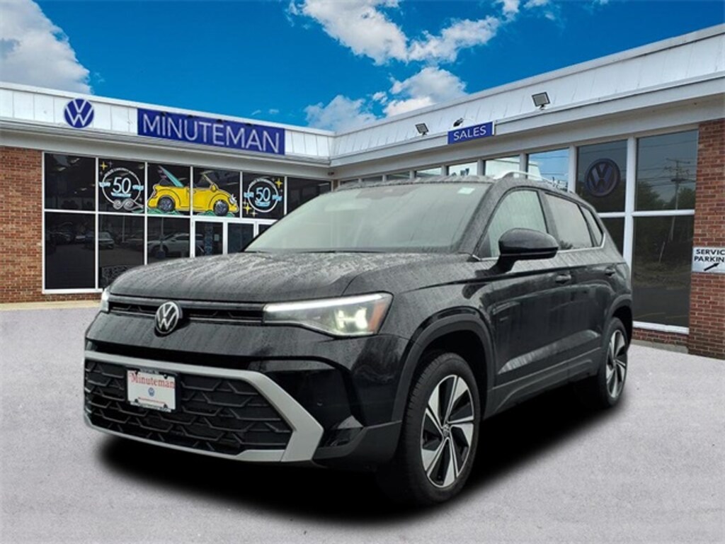 Minuteman Volkswagen is proud to present you with another True Market Priced Vehicle. This 2026 Volkswagen Taos 1.5T SE is loaded with the following Factory Options: Panoramic Sunroof Package, 4-Wheel Disc Brakes, 6 Speakers, ABS brakes, Active Blind Spot Monitor, Air Conditioning, Alloy wheels, AM/FM radio: SiriusXM with 360L, Auto High-beam Headlights, Auto-Dimming Rear-View Mirror, Automatic temperature control, Black Bumperdillo Protection Plate For Rear Bumper, Brake assist, Bumpers: body-color, Cloudtex and Cloth Seating Surfaces, Compass, Delay-off headlights, Driver door bin, Driver vanity mirror, Dual front impact airbags, Dual front side impact airbags, Electronic Stability Control, Emergency communication system: VW Car-Net Safe & Secure 5-year, Exterior Parking Camera Rear, Four wheel independent suspension, Front anti-roll bar, Front Bucket Seats, Front Center Armrest, Front dual zone A/C, Front reading lights, Front Strut Rear Multi-Link Suspension, Fully automatic headlights, Heated door mirrors, Heated Front Bucket Seats, Heated front seats, Heated steering wheel, Illuminated entry, Leather Shift Knob, Low tire pressure warning, Occupant sensing airbag, Outside temperature display, Overhead airbag, Overhead console, Panic alarm, Passenger door bin, Passenger vanity mirror, Power door mirrors, Power driver seat, Power steering, Power windows, Radio data system, Radio: MIB3 Composition Media AM/FM/HD, Rain sensing wipers, Rear anti-roll bar, Rear seat center armrest, Rear window defroster, Rear window wiper, Remote keyless entry, Rubber Mats Kit, Security system, Speed control, Speed-sensing steering, Split folding rear seat, Spoiler, Steering wheel mounted audio controls, Tachometer, Telescoping steering wheel, Tilt steering wheel, Traction control, Trip computer, Variably intermittent wipers, VW Care, and Wheels: 18" 2-Tone Machined Alloy!!