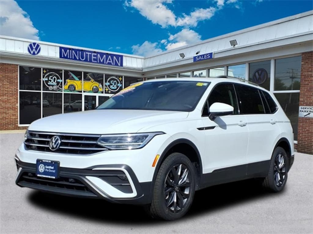 Minuteman Volkswagen is proud to present you with another True Market Priced Pre-Owned Vehicle. This 2022 Volkswagen Tiguan 2.0T SE Volkswagen Certified Pre-Owned is loaded with the following Factory Options: AWD Volkswagen Certified Pre-Owned Certified, AWD, 3.33 Axle Ratio, 4-Wheel Disc Brakes, 4-Wheel Independent Suspension, 6 Speakers, ABS brakes, Air Conditioning, Alloy wheels, AM/FM radio: SiriusXM with 360L, Auto-dimming Rear-View mirror, Automatic temperature control, Brake assist, Bumpers: body-color, Compass, Delay-off headlights, Driver door bin, Driver vanity mirror, Dual front impact airbags, Dual front side impact airbags, Electronic Stability Control, Emergency communication system: Car-Net, Exterior Parking Camera Rear, Four wheel independent suspension, Front anti-roll bar, Front Bucket Seats, Front Center Armrest, Front dual zone A/C, Front reading lights, Fully automatic headlights, Heated door mirrors, Heated Front Comfort Seats, Heated front seats, Illuminated entry, Leather Shift Knob, Low tire pressure warning, Occupant sensing airbag, Outside temperature display, Overhead airbag, Overhead console, Panic alarm, Passenger door bin, Passenger vanity mirror, Perforated V-Tex Leatherette Seating Surfaces, Power door mirrors, Power driver seat, Power Liftgate, Power steering, Power windows, Radio data system, Radio: MIB3 Composition Media AM/FM/HD, Rain sensing wipers, Rear anti-roll bar, Rear reading lights, Rear seat center armrest, Rear window defroster, Rear window wiper, Remote keyless entry, Roof rack: rails only, Security system, Speed control, Speed-sensing steering, Split folding rear seat, Spoiler, Steering wheel mounted audio controls, Tachometer, Telescoping steering wheel, Tilt steering wheel, Traction control, Trip computer, Turn signal indicator mirrors, Variably intermittent wipers, and Wheels: 18" Dark Graphite 10-Spoke Alloy!!