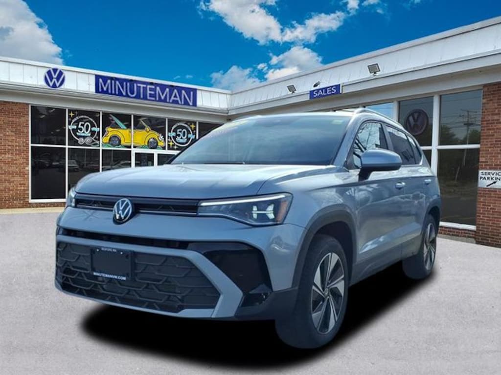 Minuteman Volkswagen is proud to present you with another True Market Priced Pre-Owned Vehicle. This 2025 Volkswagen Taos 1.5T SE Volkswagen Certified Pre-Owned is loaded with the following Factory Options: Panoramic Sunroof Package, Volkswagen Certified Pre-Owned Certified, 4-Wheel Disc Brakes, 6 Speakers, ABS brakes, Active Blind Spot Monitor, Air Conditioning, Alloy wheels, AM/FM radio: SiriusXM with 360L, Auto High-beam Headlights, Automatic temperature control, Black Bumperdillo Protection Plate for Rear Bumper, Brake assist, Bumpers: body-color, CloudTex & Cloth Seating Surfaces, Compass, Delay-off headlights, Driver door bin, Driver vanity mirror, Dual front impact airbags, Dual front side impact airbags, Electronic Stability Control, Emergency communication system: VW Car-Net Safe & Secure 5-year, Exterior Parking Camera Rear, First Aid Kit, Four wheel independent suspension, Front anti-roll bar, Front Bucket Seats, Front Center Armrest, Front dual zone A/C, Front reading lights, Front Strut Rear Multi-Link Suspension, Fully automatic headlights, Heated door mirrors, Heated Front Bucket Seats, Heated front seats, Heated steering wheel, Illuminated entry, Leather Shift Knob, Low tire pressure warning, Occupant sensing airbag, Outside temperature display, Overhead airbag, Overhead console, Panic alarm, Passenger door bin, Passenger vanity mirror, Power door mirrors, Power driver seat, Power steering, Power windows, Radio data system, Radio: MIB3 Composition Media AM/FM/HD, Rain sensing wipers, Rear anti-roll bar, Rear seat center armrest, Rear window defroster, Rear window wiper, Remote keyless entry, Roadside Assistance Kit, Rubber Mats Kit, Security system, Speed control, Speed-sensing steering, Split folding rear seat, Spoiler, Steering wheel mounted audio controls, Tachometer, Telescoping steering wheel, Tilt steering wheel, Traction control, Trip computer, Variably intermittent wipers, VW Care, and Wheels: 18" 2-Tone Machined Alloy!!